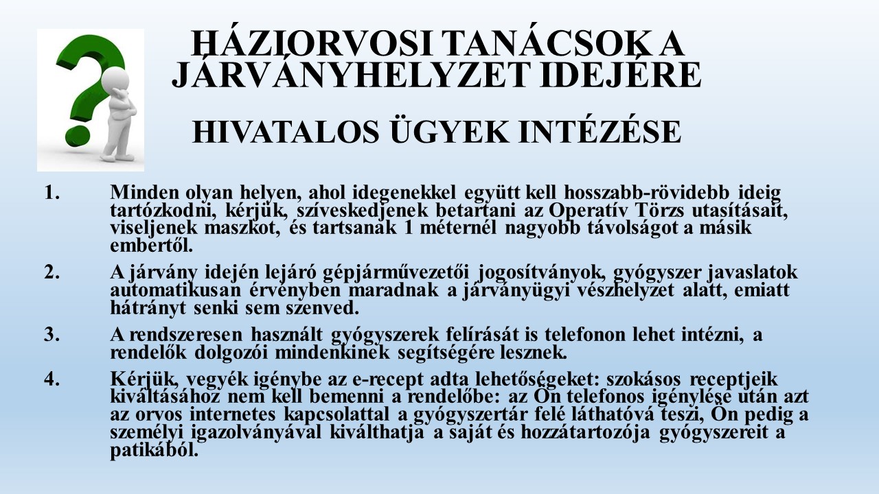 Most, a Háziorvosokkal, Egészségügyi Dolgozókkal együtt a város Vezetése újra felhívja a figyelmet a legfontosabbakra