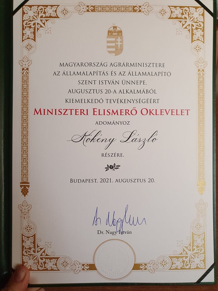 Gratulálok Kökény Lászlónak a SZAKI dolgozójának, aki 2021. augusztus 20-án miniszteri elismerő oklevélben részesült. Munkájához további sok sikert, és jó egészséget kívánok!