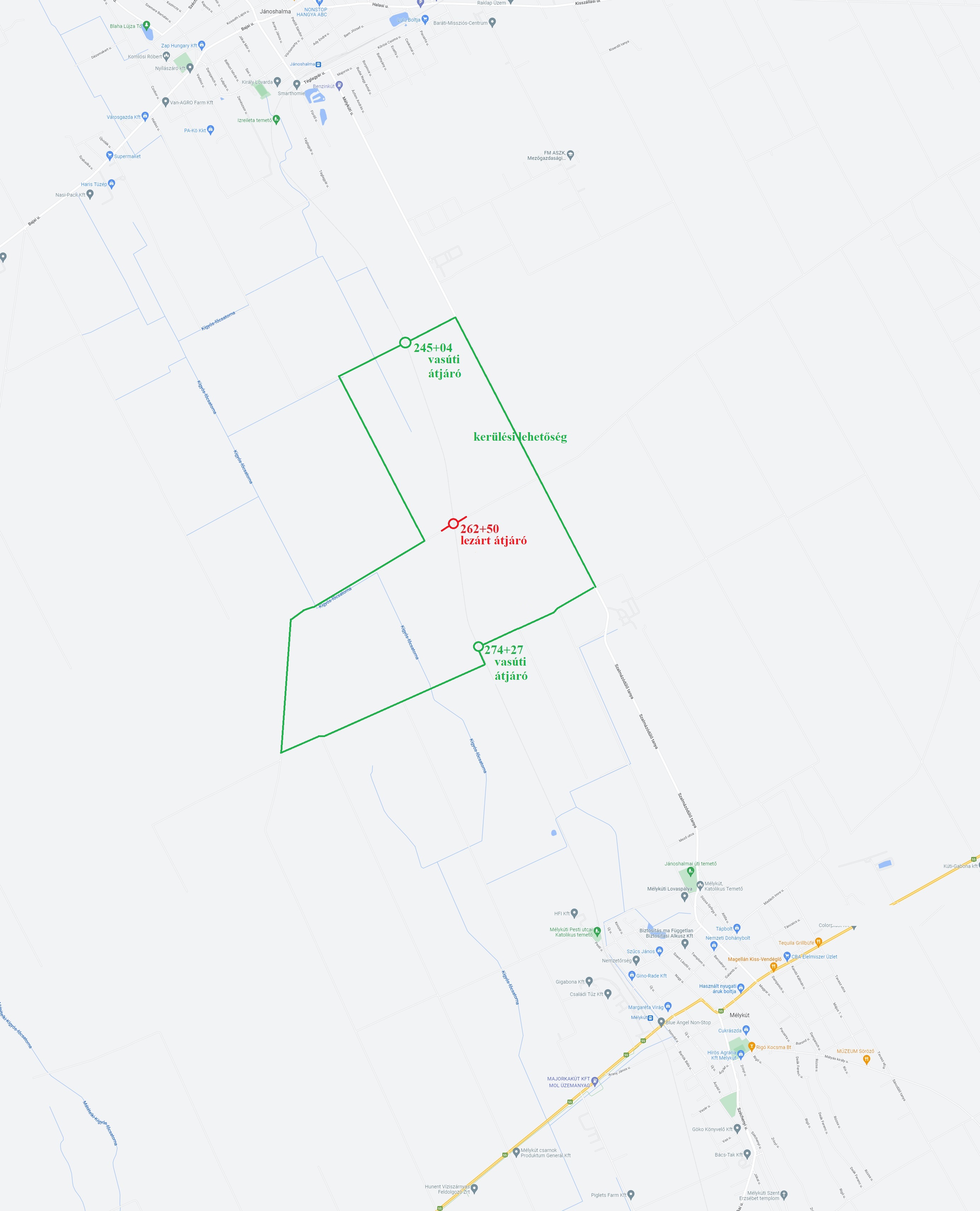 Ez idő alatt közúti közlekedésre a 274+27 hm szelvényben ( 0317, és 0332 hrsz. utak) és a 245+04 ( Téglagyár u) szelvényben lévő átjárókat kell használni.