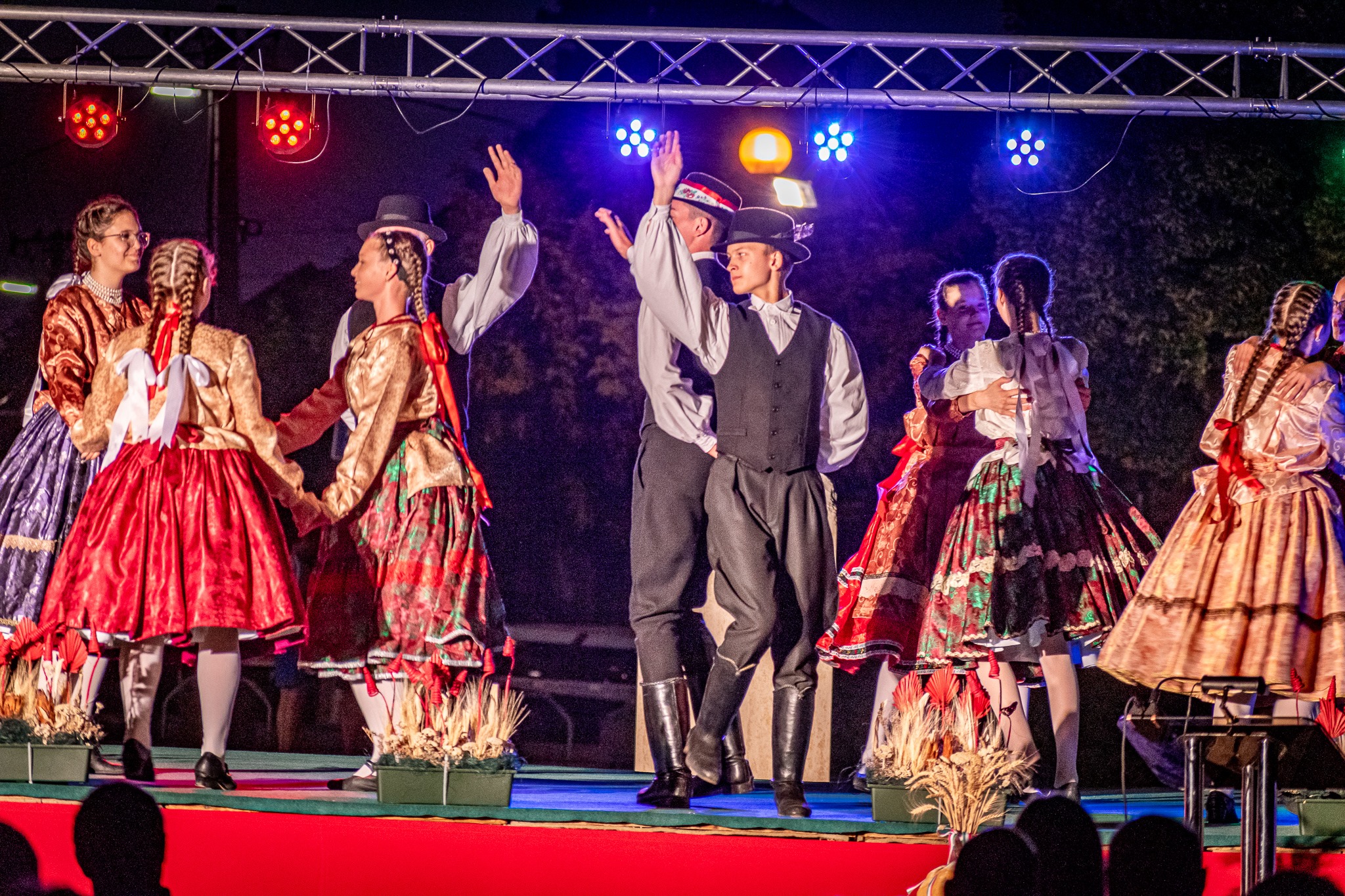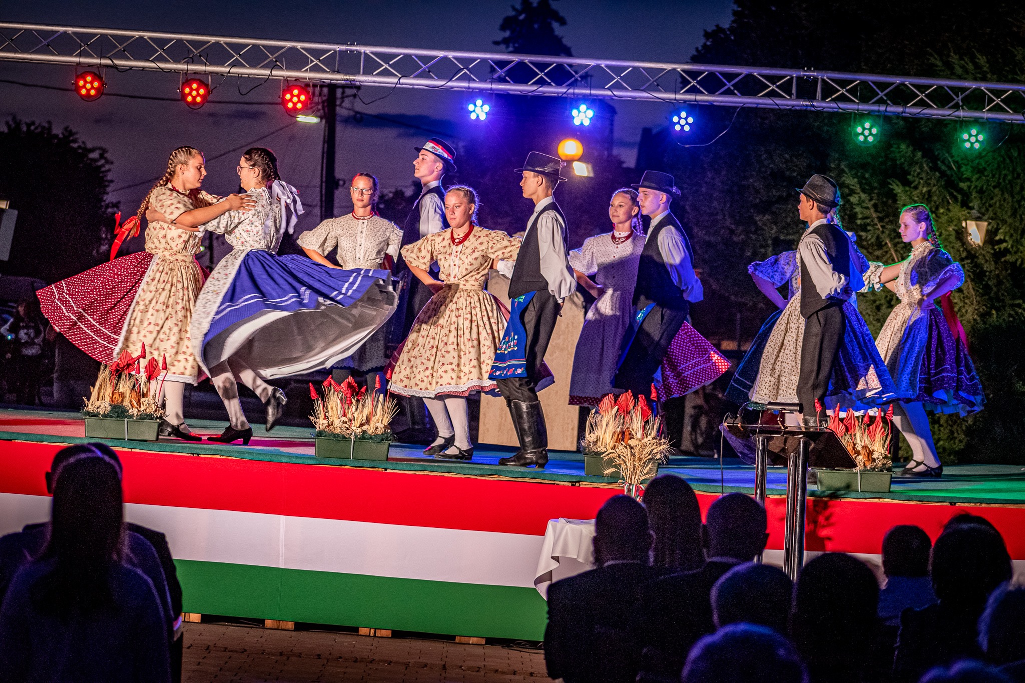 ánoshalma, 2021. Augusztus 20. Az ünnep további pillanatai. Színpadon a Topolyai Kodály Zoltán Magyar Művelődési Egyesület tánccsoportja. A muzsikusok Temeriniek. Nagyon szép műsor volt!
