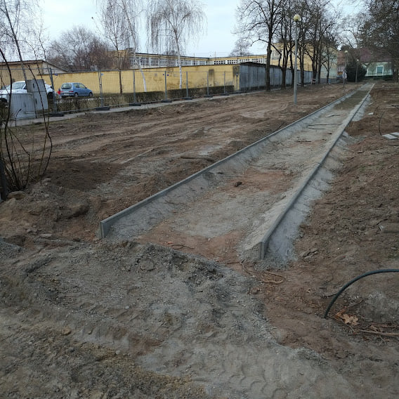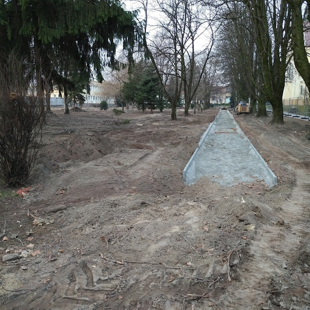 Az elmúlt napokban lerakták a szegélyköveket a parkban azokra a részekre, ahol egy környezetbe illő burkolat kerül majd kiépítésre a régi salakos, sáros megoldás helyett. Várhatóan ezután egyre látványosabb lesz az építkezés.